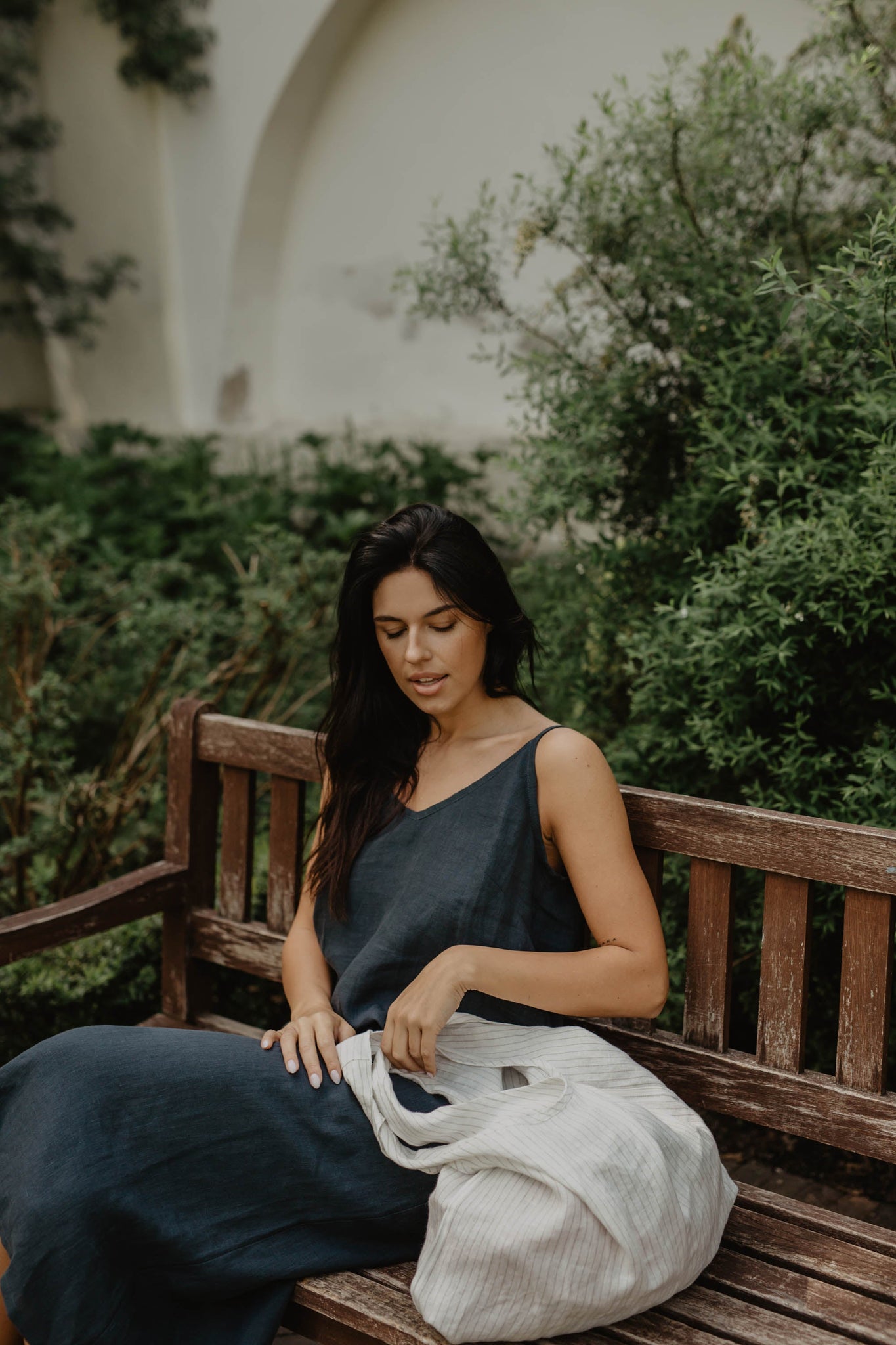 A casual, minimalist linen tote bag, available in 15 colours (see our colour palette). A perfect bag for shopping, day-to-day errands or even the beach. You can easily fold it and carry it in your bag to always be eco-friendly and not use plastic bags.