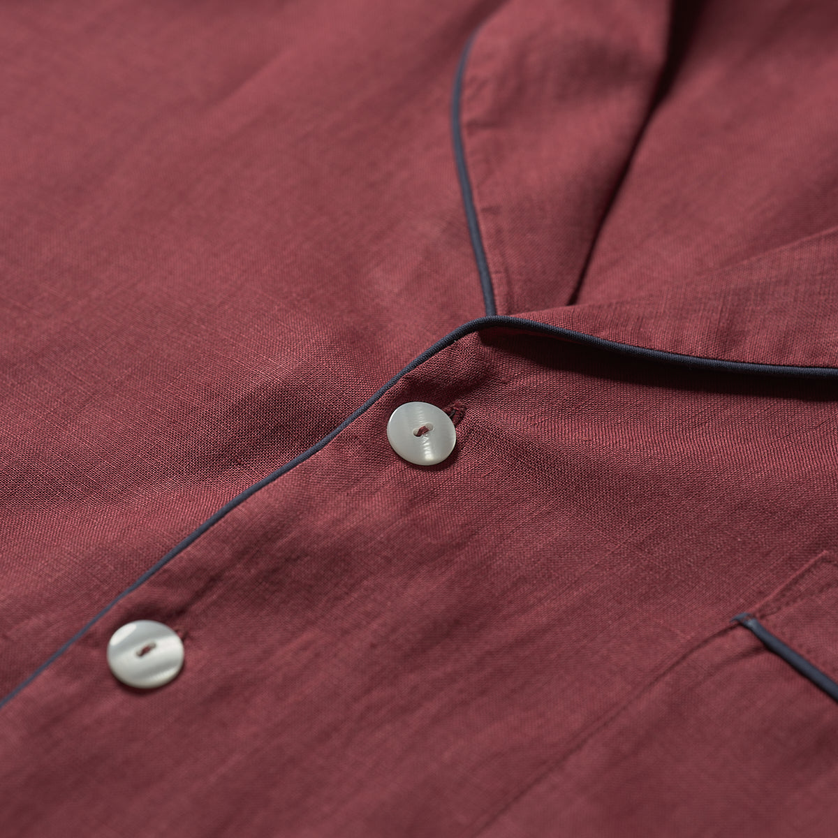 Men's Cherry Plain Linen Pyjama Trouser Set