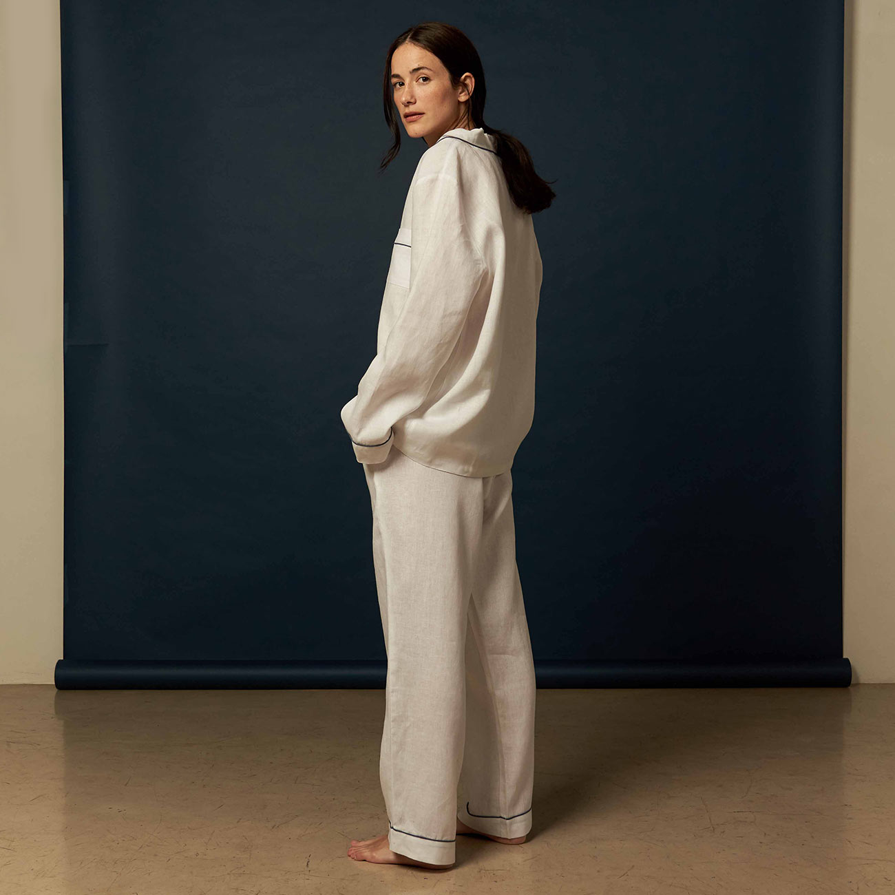 Our exceptionally soft OEKO-TEX® French Linen fabric is expertly crafted. Our design team prioritizes relaxed, timeless fits and shapes that are easy to wear. Our linen clothing surpasses other options in quality, utilizing 170GSM linen, equivalent to our luxury bedding range.