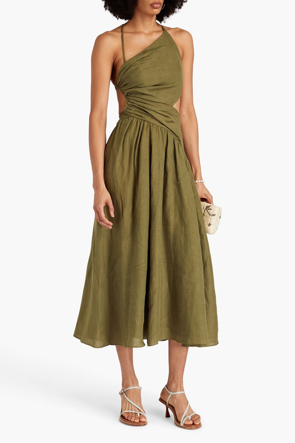Cutout linen midi dress