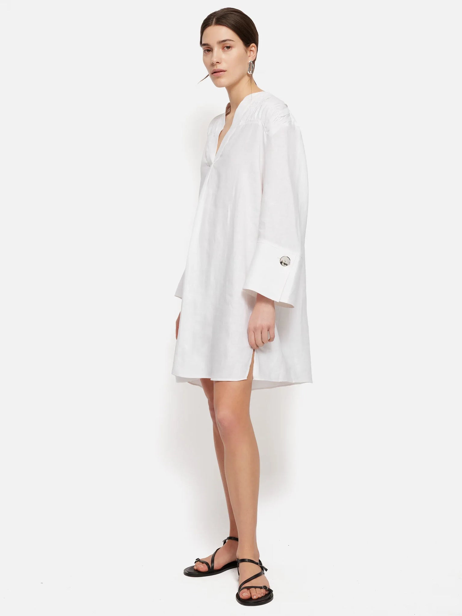 An easy, sunshine-ready silhouette for the beach and beyond. The Linen Kaftan Dress: laid-back summertime splendour.